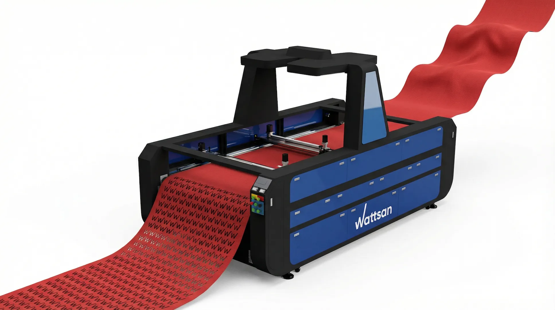 Outfitted with a 150–180 W CDWG laser tube, the system processes and engraves non-metallic materials up to 25 mm thick. Working with the conveyor table and servo-driven mechanics, it efficiently handles fabric, leather, faux leather, and other roll-based materials.