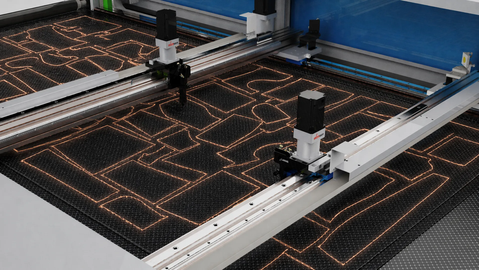 Controlled by the Trocen TL5269 intelligent system, two independent gantries operate simultaneously in separate zones of the work area, effectively cutting production time in half.
